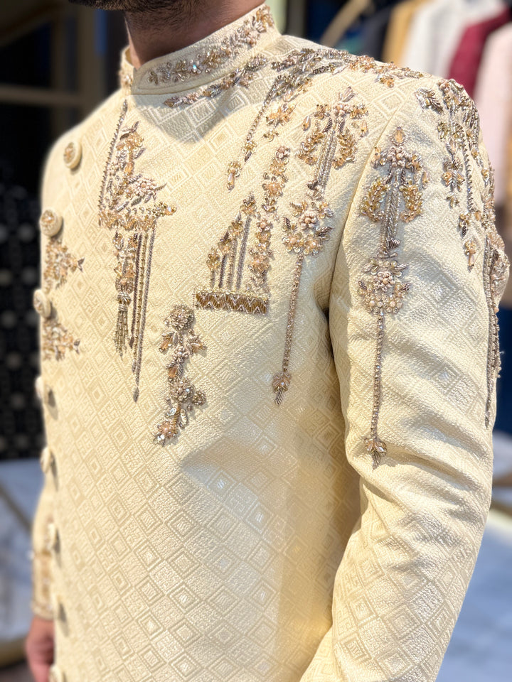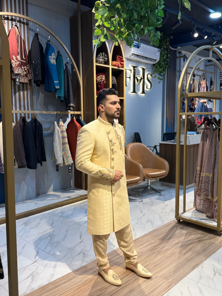 CREAM BEIGE MASOORI SHERWANI - ONLY SHERWANI