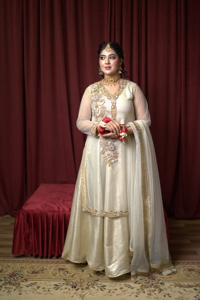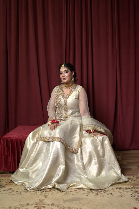 Draped in timeless elegance, this ivory ensemble embodies sophistication with intricate embroidery and delicate details. Paired with traditional jewelry, it perfectly blends cultural heritage with modern charm. A true statement of luxury and poise, crafted for the woman who loves to shine with elegance. 🌸👑