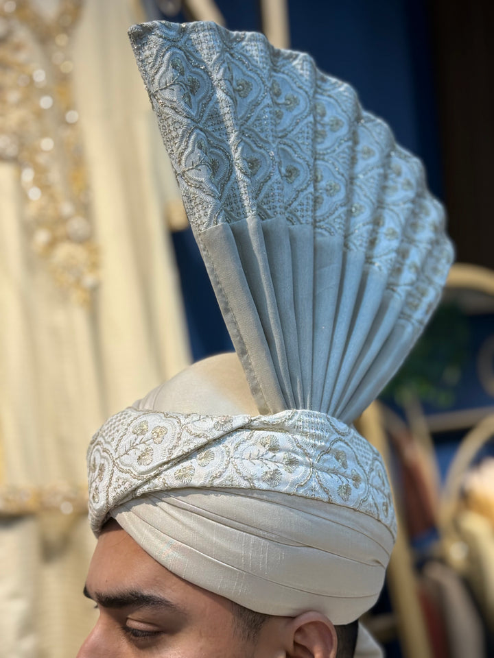 This stunning sherwani is a masterpiece of traditional craftsmanship, featuring intricate embroidery that showcases the skillful hands of artisans. The embroidery is delicately woven into the fabric, creating a beautiful design that adds to the sherwani’s grandeur. The luxurious silk fabric used in its creation gives it a smooth, lustrous texture and a sophisticated feel. The high-quality silk, drapes elegantly, making it perfect for special occasions like weddings and formal events. The traditional craftsmanship and attention to detail in the embroidery and fabric choice make this sherwani a true work of art, exuding timeless elegance and sophistication.