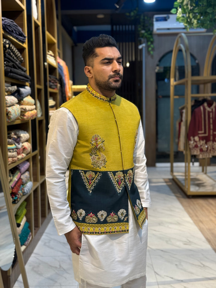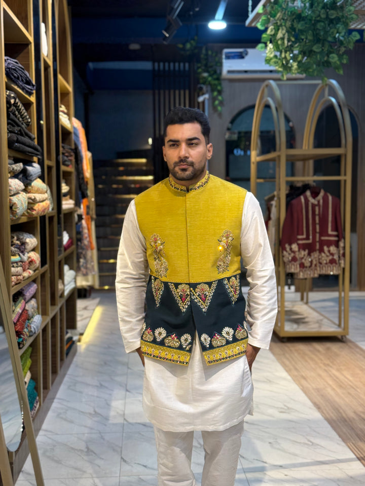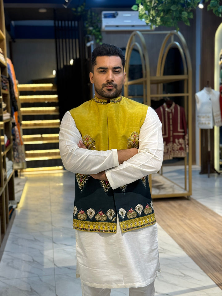 YELLOW GREEN WAIST COAT- ONLY WAIST COAT